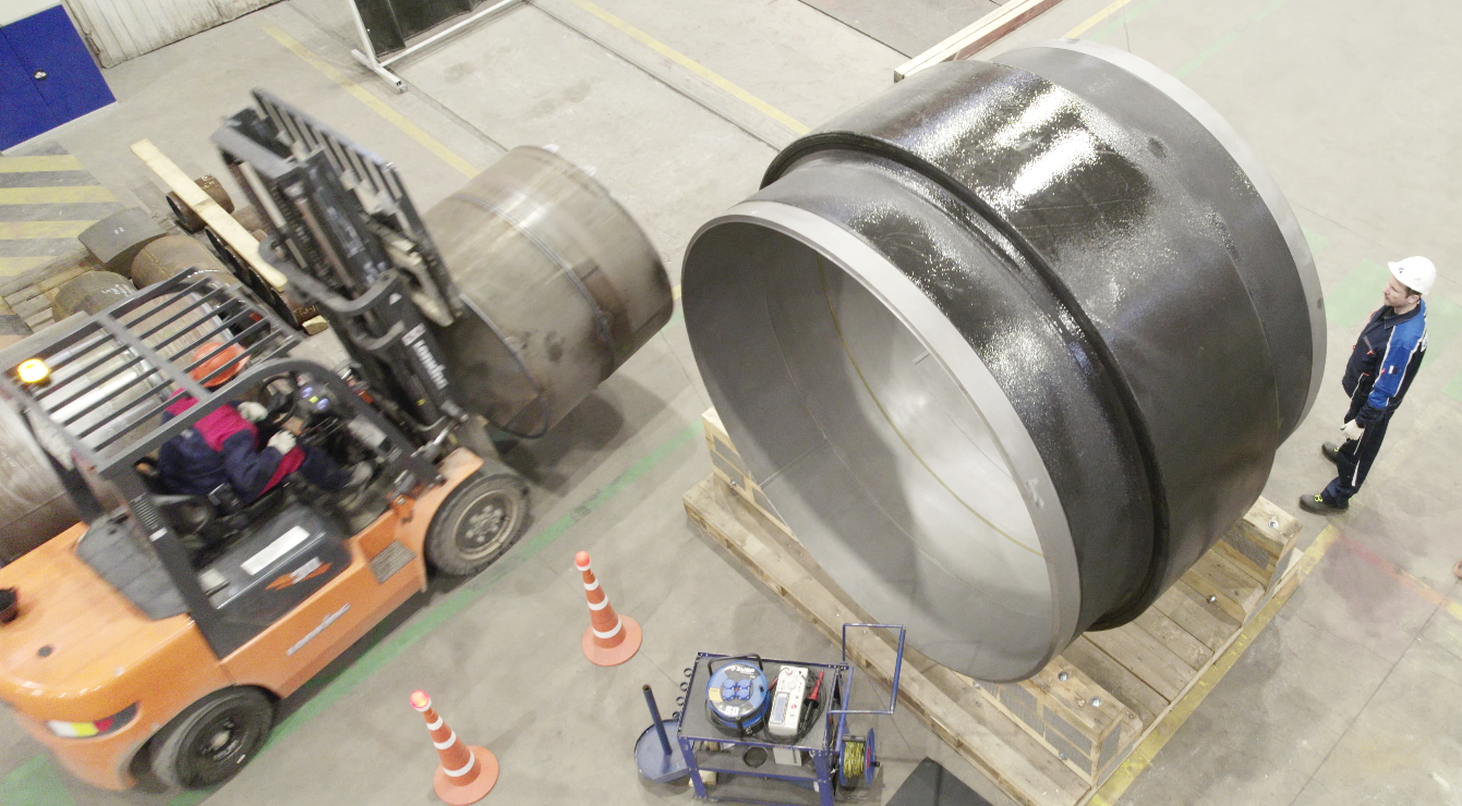 Изолирующая монолитная муфта для трубопровода диаметром 1422 ммс удлинёнными концевыми патрубками.