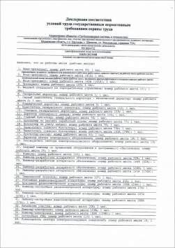 Декларации соответствия условий труда и сводные ведомости результатов проведения СОУТ
