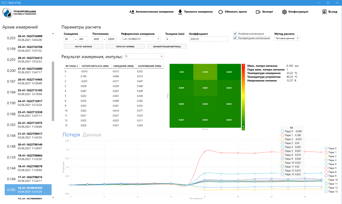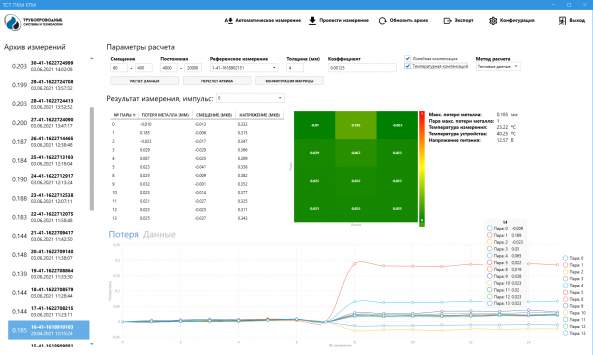 - визуализация архива накопленных измерений в виде графиков утонения металла;
